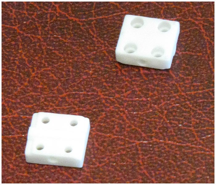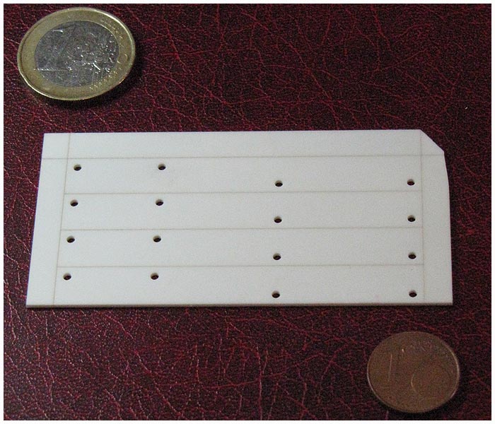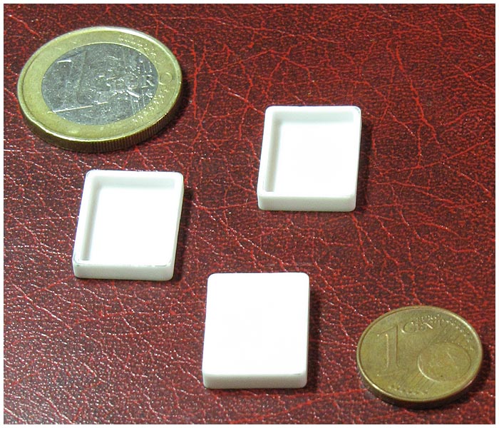 They are manufactured in material with an Al2O3 content of 94-96% (manufacturing in 99.7% Al2O3 is also possible) and predominantly utilized for mounting electronic components in diverse electronic devices. The surface finish can vary between Ra=0.6 to Ra=0.05. Our carriers are suitable for the application of thick film metallisation. We are also able to process orders for manufacturing ceramic elements for the electronics industry, including for example insulators and sleeves (with or without metallisation for the subsequent soldering process): |